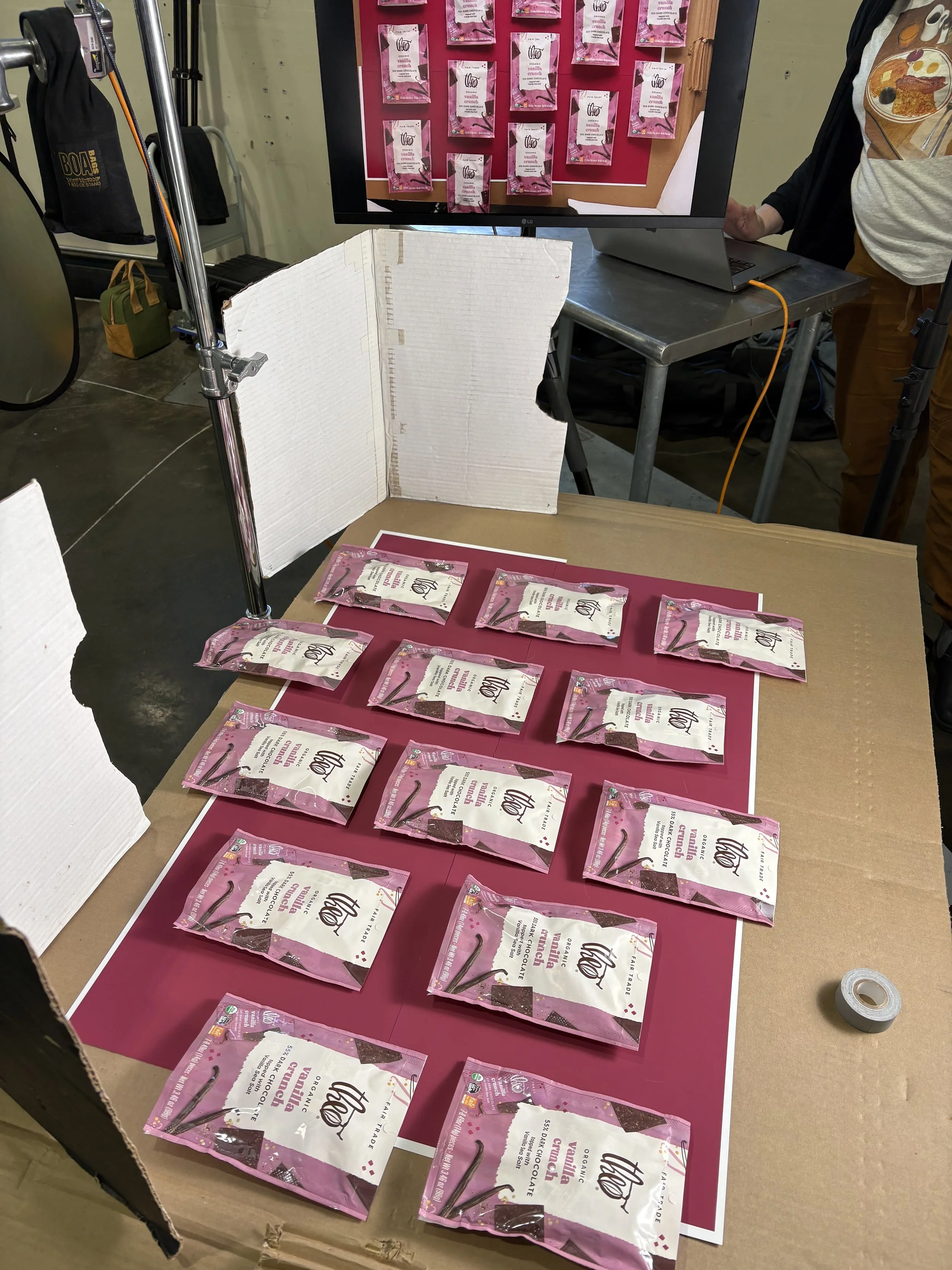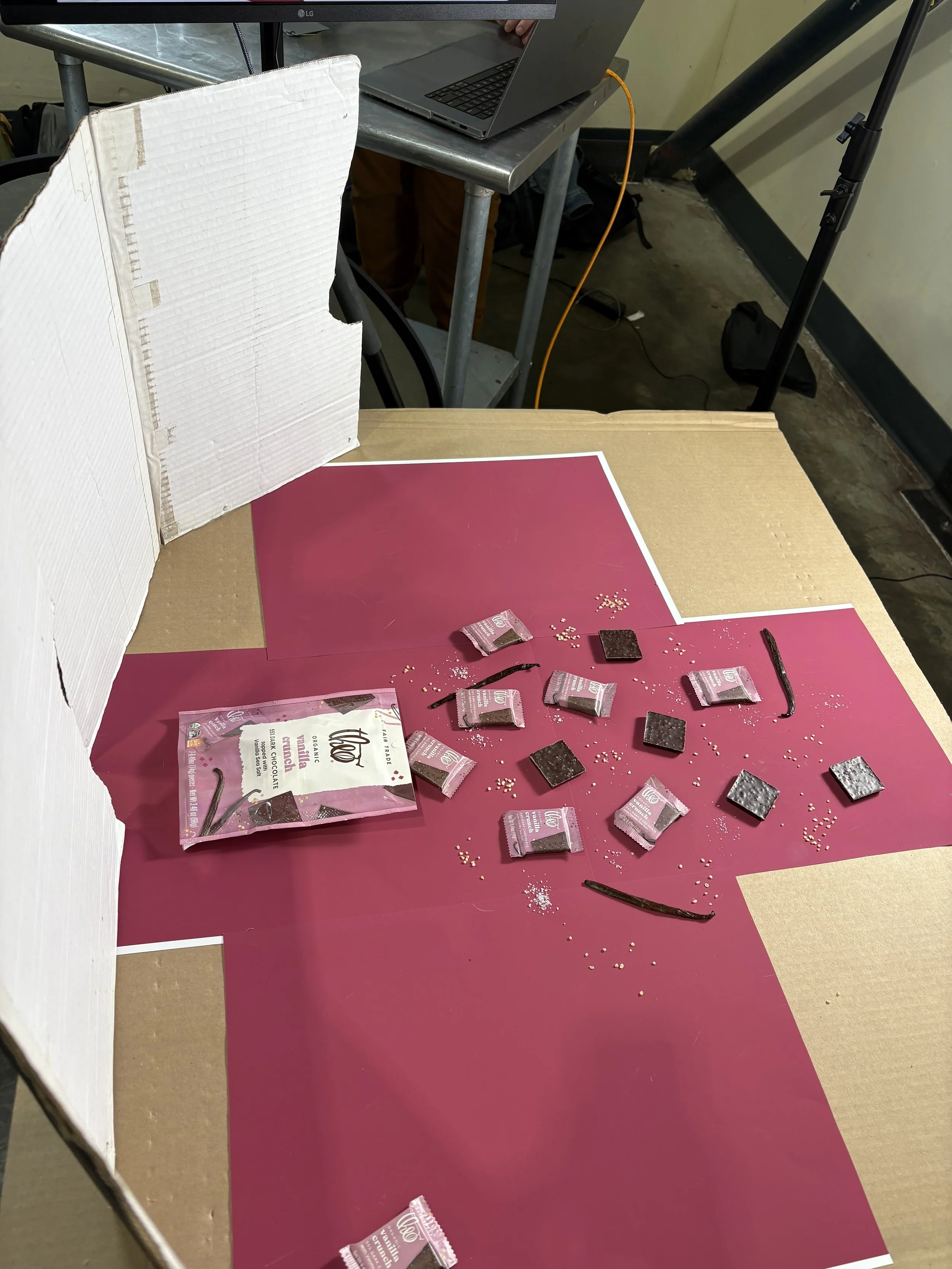 For the art direction, I focused on two key themes: portability and visual flavor appeal. Interestingly, during our discussions about the product, we realized that once unwrapped, the Singles bar is the perfect size for a s’more. This discovery aligns seamlessly with Theo’s summer campaigns, which often focus on s’mores and camping, making it a great fit for seasonal promotions.